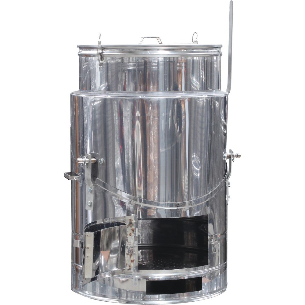 DIMENZIJE: visina 900 mm, prečnik 580 mm, dubina kotla 480 mm, debljina 0.8 mm, ložište 2.0 mmInox peći su prvenstveno namjenjene za kuhanje kao i za korištenje u kompletnoj prehrambenoj industriji. Peći se proizvode u litražama od 100, 120 i 150 litara, u ovisnosti od želje kupca.