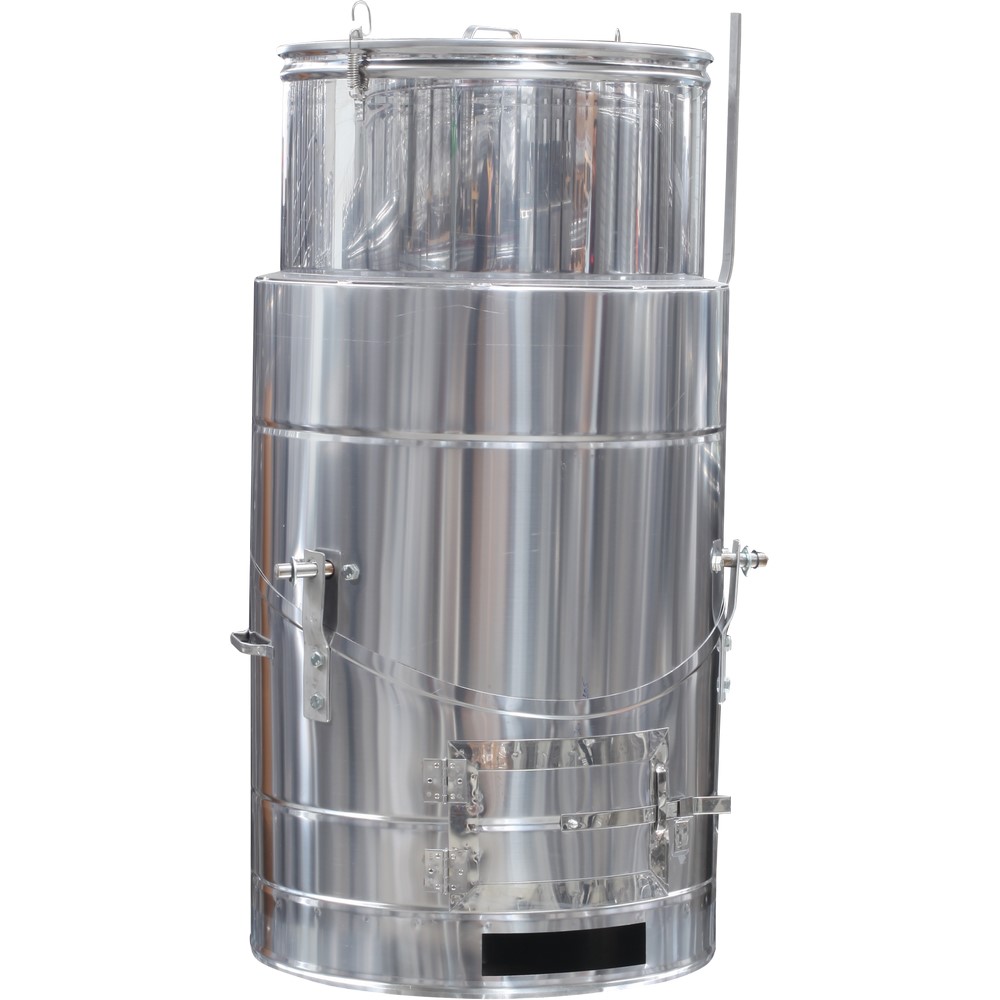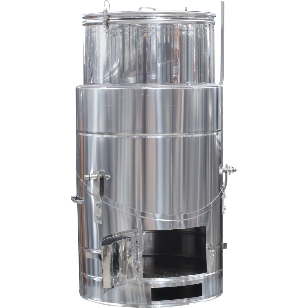 DIMENZIJE: visina 1100 mm, prečnik 580 mm, dubina kotla 700 mm, debljina 0.8 mm, ložište 2.0 mmInox peći su prvenstveno namjenjene za kuhanje kao i za korištenje u kompletnoj prehrambenoj industriji. Peći se proizvode u litražama od 100, 120 i 150 litara, u ovisnosti od želje kupca.
